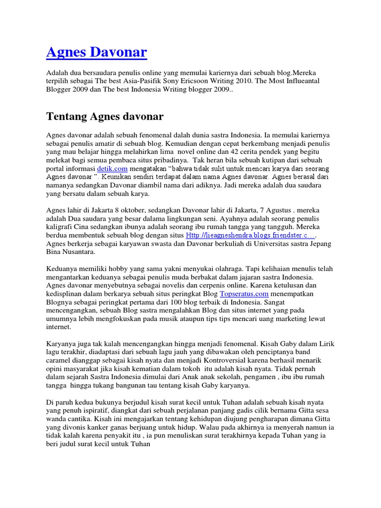 Sebuah kisah yang sangat inspiratif mengingatkan saya pada perjuangan aya dalam 1 litre of tearssama sama gadis belia penuh semangat sama sama. Akan tetapi setiap karya sastra novel tentu tak ada satupun yang luput dari penilaian yang akan membuahkan sebuah kritikan tak terkecuali pada novel karya agnes davonar ini. Novel ini adalah novel yang ditulis berdasarkan kisah nyata yang kemudian dibalut dengan imajinasi pengarang pendekatan mimesis adalah salah satu pendekatan yang dapat dipilih untuk membedah novel ini guna menentukan nilai nilai yang terkandung dalam nolel ini. Dalam hal redaksional novel ini masih terdapat kesalahan dalam. Keke terbaik ketiga di kelas halaman 199. Gadis kecil inilah tokoh utama dalam novel surat kecil untuk tuhan yang divonis menderita kanker ganas dan diprediksi hidupnya hanya tinggal 5 hari lagi.