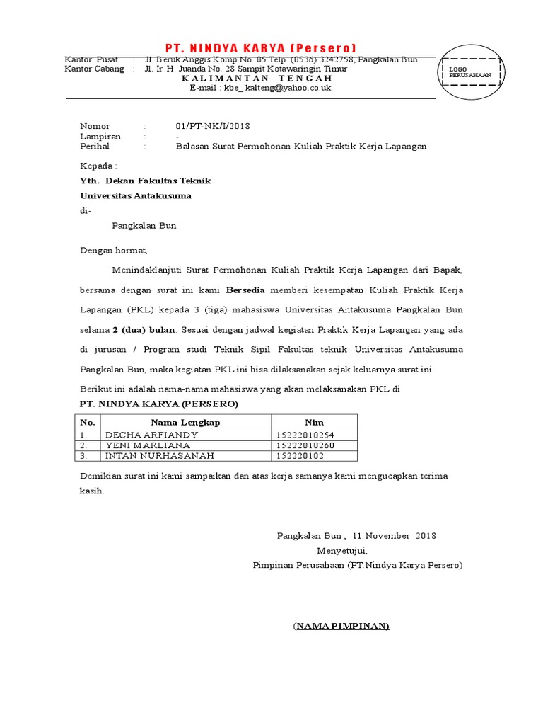Contoh Surat Balasan Kerja Praktek Dari Perusahaan Backup