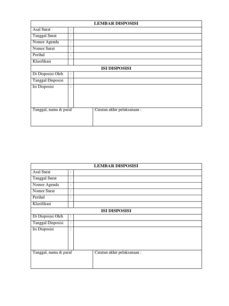 Contoh surat disposisi perusahaan. Surat ini umumnya berisi informasi ketentuan atau perintah kerja yang dapat dijadikan pedoman bagi karyawan pada suatu lembaga instansi atau perusahaan. Itu tadi penjelasan singkat tentang contoh surat disposisi yang dapat kami berikan pada kesempatan kali ini. Isi dari surat dinas adalah permasalahan kedinasan seperti pemberitahuan suatu izin penugasan menyampaikan pengumuman permohonan dan lain lain. Perusahaan a menanggapi surat permohonan kerjasama dengan perusahaan b maka perusahaan b harus menuliskan sebuah surat yang di dalamnya harus terdapat tanda tangan atau paraf dan juga harus memiliki tanggal waktu di bawahnya. Surat dinas biasanya jika akan menugaskan seorang pegawai dari sebuah instansi. Namun jika perseorangan sudah meninggalkan surat sebagai media komunikasi tidak demikian dengan perusahaan instansi pemerintahan maupun lembaga dan organisasi.