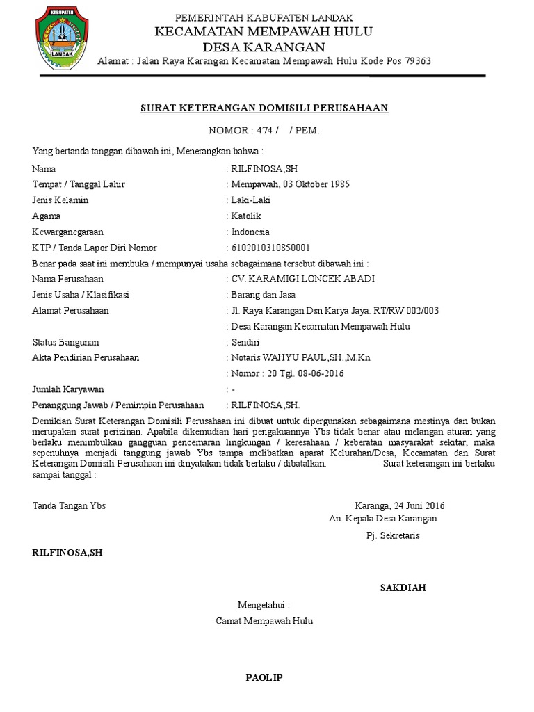 Contoh surat keterangan domisili perusahaan dari kelurahan ini dibutuhkan oleh sebuah perusahaan untuk melengkapi syarat pembuatan rekening bank atas nama perusahaan. Surat keterangan domisili ini biasanya dikeluarkan oleh pihak kelurahan mulai dari pejabat terendah yaitu rt hingga kepala desa. Nah jika sebelumnya kita sudah membahas mengenai berbagai macam surat lamaran kerja seperti surat lamaran kerja guru maka pada kesempatan kali ini kita akan bersama sama mempelajari mengenai cara membuat surat keterangan domisili. Selain itu surat ini juga diperlukan oleh perusahaan untuk membuat nomor pokok wajib pajak npwp perusahaan. Salah satu contoh surat yang dikeluarkan aparat ataupun pejabat tertentu dan banya dipergunakan sekarang ini yaitu surat keterangan. Contoh surat permohonan domisili contoh surat keterangan domisili.