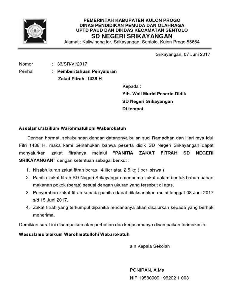 Contoh laporan zakat fitrah contoh tiap. Biasanya sekolah sekolah tersebut akan mengirimkan surat edaran yang berisikan penawaran bantuan untuk menyalurkan zakat fitrah. Contoh surat himbauan zakat fitrah. Sdn bulak rukem i no 258 surabaya surat edaran. Penerimaan dan penyaluran zakat fitrah. Tanggal dan tempat pembuatan surat.
