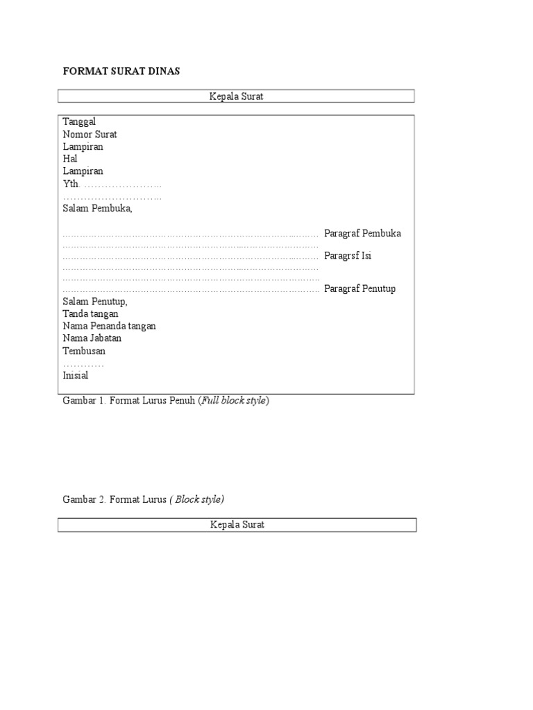 Untuk penulisan bagian bagian surat semuanya dimulai dari kiri. Untuk ukuran batas pinggir kiri 20 dan kanan 80 elite atau batas pinggir 15 dan kanan 75 pica. Format setengah lurus versi b indonesia baru gambar 5. Dalam ilmu administrasi perkantoran memang ada beberapa jenis surat yang dipelajari berdasarkan bentuknya. Format lurus penuh full block style gambar 2. Berikut ini contoh contoh format surat yang dimaksud di atas.