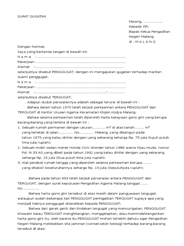 Contoh Surat Gugatan Harta Gono Gini Cuitan Dokter