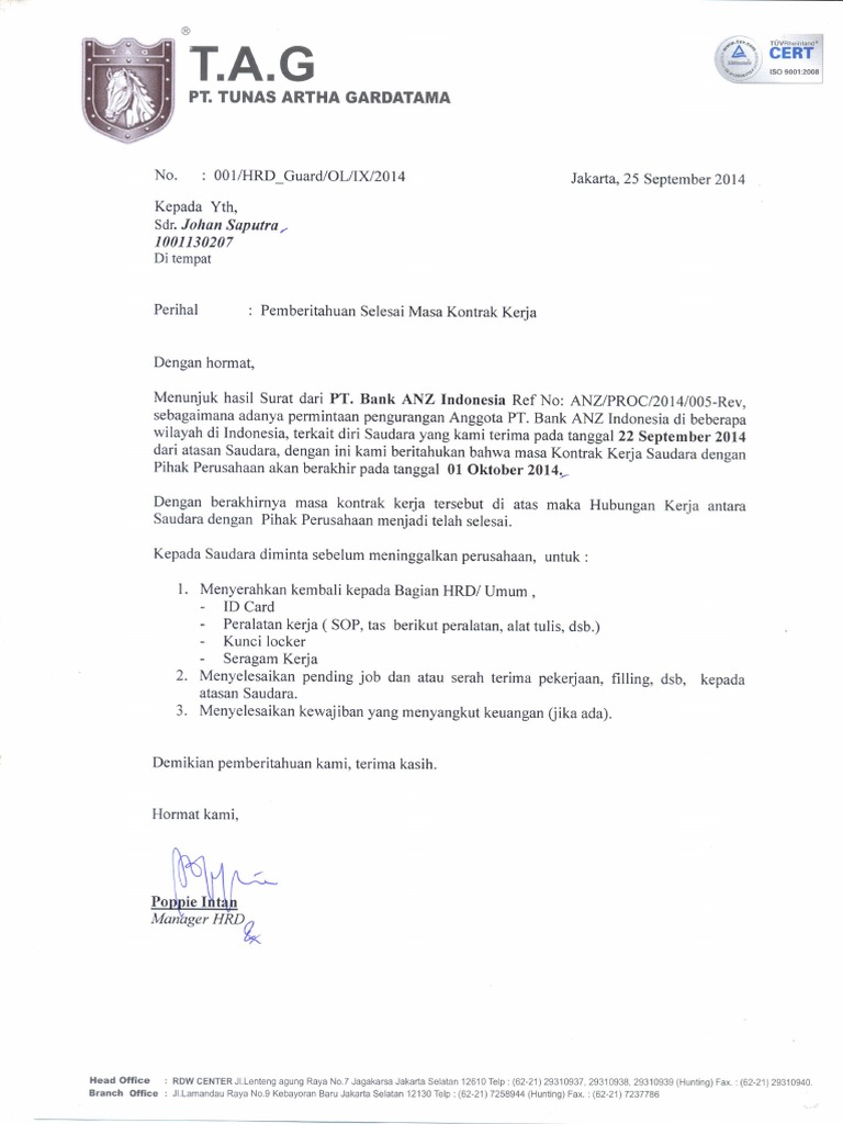 Sebelum anda men download contoh surat tersebut ada beberapa masalah mengenai kontrak kerja yang perlu anda tahu. Employee relation department pt.