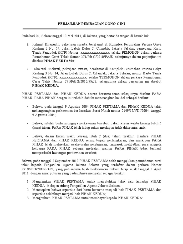 Dalam sebuah perjanjian dibutuhkan sebuah surat perjanjian sebagai bukti. Surat perjanjian harta gono gini tersebut juga harus ditandatangani oleh semua pihak yang terkait. The collection that comprising chosen picture and the best amongst others. Bila terjadi permasalahan yang tidak di harapkan di masa mendatang. Contoh surat pengaduan jika pengusaha bayar upah di bawah ketentuan. Contoh surat hukum ketenagakerjaan hukum perkawinan hukum pertanahan hukum acara senin 29 september 2014 contoh perjanjian pembagian harta bersama gono gini.
