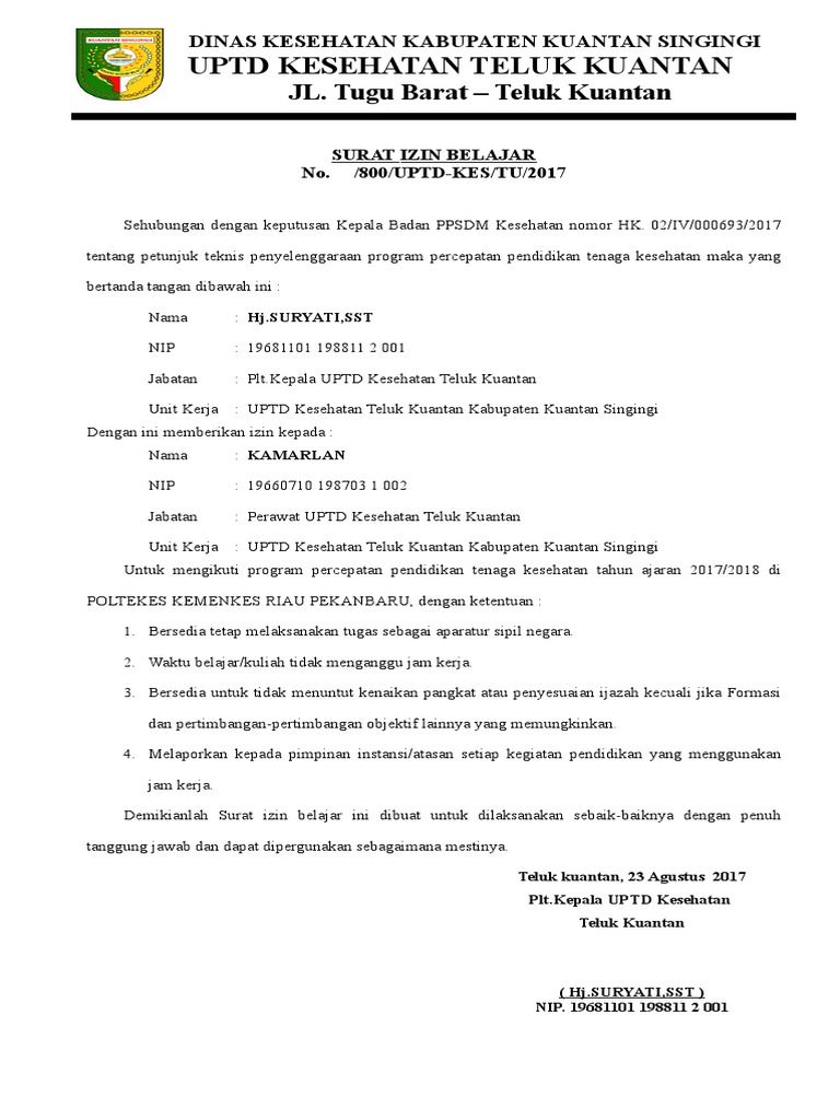 Sd it maarif maahidul irfan bandongan magelang. Biasanya surat izin belajar ini mereka yang sudah menjadi pegawai negeri sipil pns namun masih memiliki ijazah terakhir sma dan harus atau diwajibkan untuk menuntaskan ke jenjang s1. Child poverty and social protection conference 18 syarat menikah terbaru di kua 2019 yang harus disiapkan. 15 contoh surat permohonan izin untuk berbagai kepentingan walaupun penggunaan surat belakagan ini sudah semakin menurun namun masih ada beberapa contoh surat yang tetap digunakan hingga sekarang. 75 desa sindangraja kec. Contoh surat permohonan izin belajar.