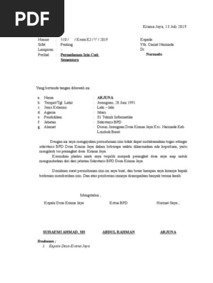 Cuti kepala desa dan perangkat desa di kabupaten kuningan menimbang mengingat a. Kpu sudah terima izin cuti kampanye sby dan 5 me. Contoh surat permohonan izin kegiatan untuk kepala desa yang baik dan benar terbaru mei 2017 berikut ini adalah sebuah contoh surat permohonan izin kegiatan atau acara yang ditujukan untuk kepala desa tempat diadakannya kegiatan. Pemberian cuti tersebut terhitung sejak perangkat desa tersebut terdaftar sebagai bakal calon kepala desa sampai dengan selesainya pelaksanaan penetapan calon kepala desa terpilih. Contoh surat izin cuti kepala desa. Beberapa hal umum yang mendasari seorang karyawan untuk mengambil cuti antara lain karena sakit mempunyai kewajiban atau kegiatan di luar kota sedang dalam periode kehamilan atau.