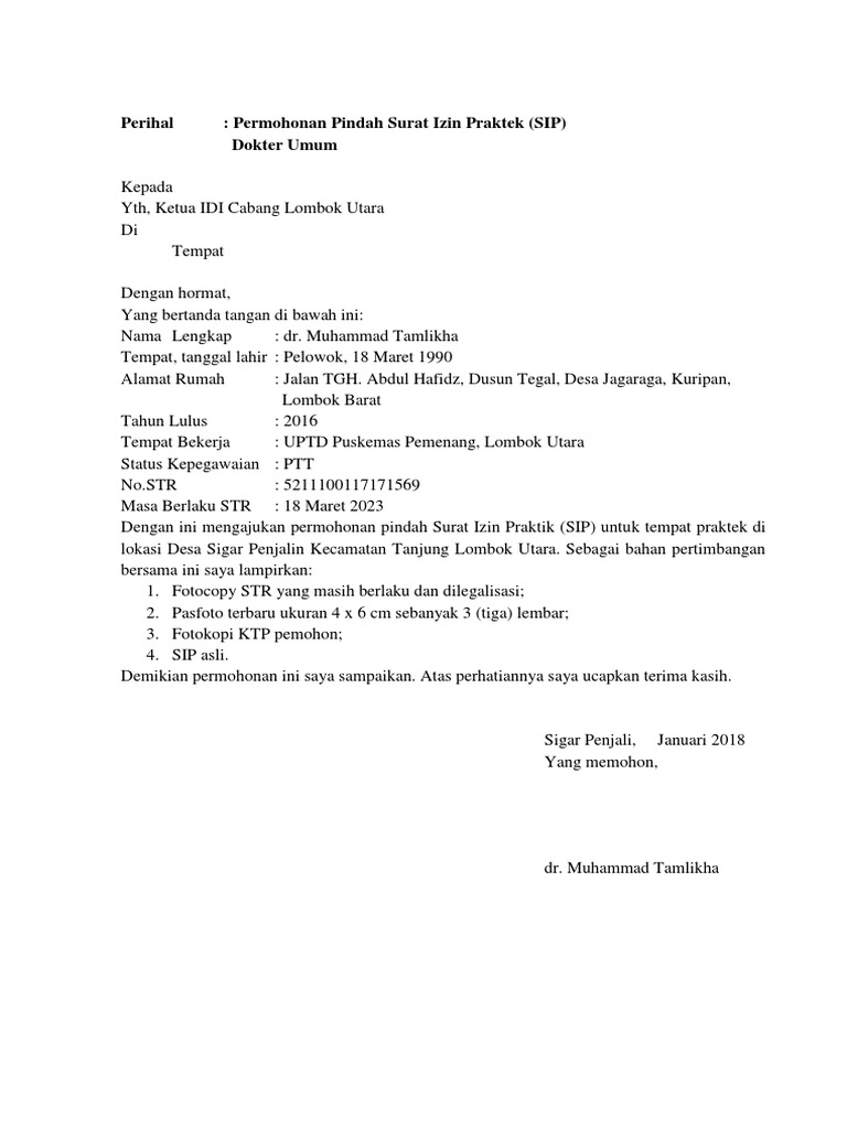 Contoh surat izin praktek dokter. Apakah anda puas dengan penjelasan pelayanan publik surat izin praktek bidan sipb tidak puas. 15 contoh surat permohonan izin untuk berbagai kepentingan walaupun penggunaan surat belakagan ini sudah semakin menurun namun masih ada beberapa contoh surat yang tetap digunakan hingga sekarang. Kepada yth bapak kepala dinas kesehatan daerah kota medan di tempat. Semoga apa yang admin sajikan bisa menjadi acuan dan referensi bagi anda yang membutuhkan contoh surat seperti di atas. Contoh surat lamaran kerja di dokter praktek have a graphic from the othercontoh surat lamaran kerja di dokter praktek it also will feature a picture of a sort that could be observed in the gallery of contoh surat. Klik banner dibawah untuk melaporkan masalah pelayanan publik surat izin praktek dokter sip dokter.