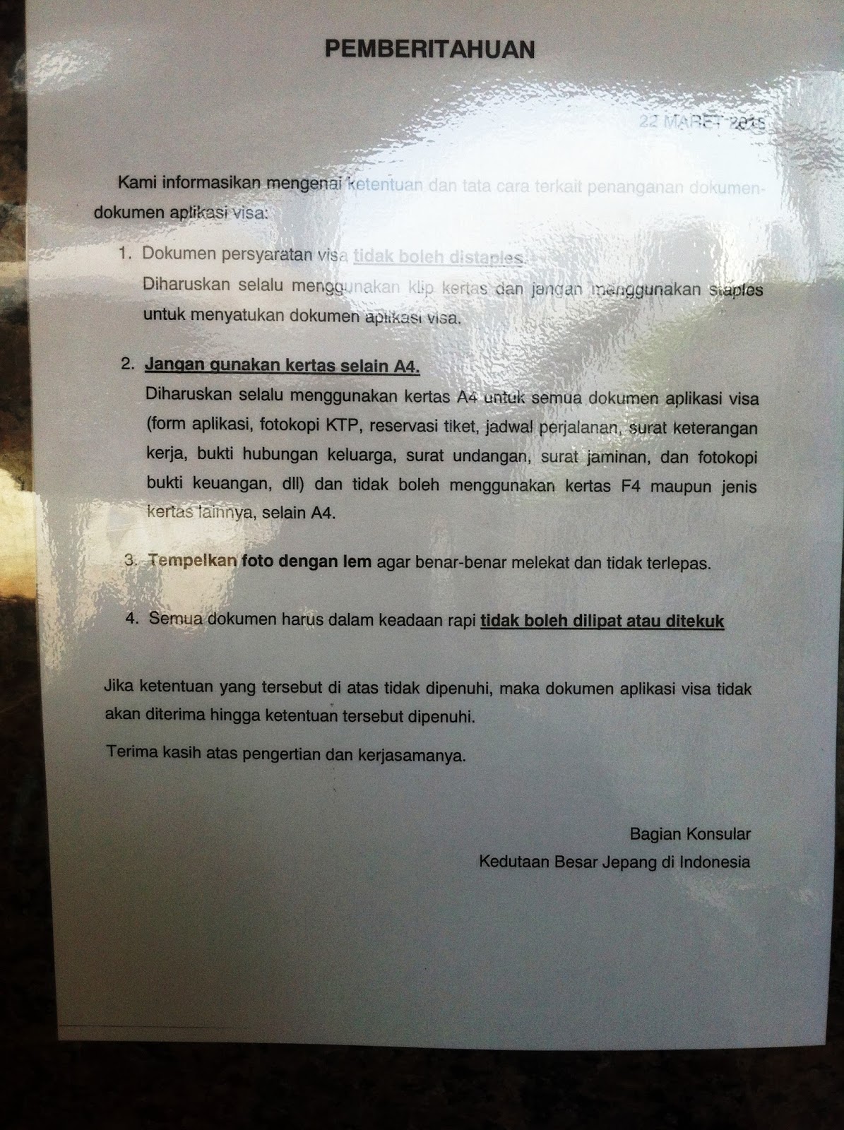 Sebaiknya mengajukan surat izin untuk cuti bekerja kepada perusahaan atau tempatnya bekerja. Jika sudah minggu ke 28 di syorkan untuk bawa catatan perubatan oleh doktor ginekologi yang menyatakan bahawa kandungan tiada komplikasi due date dan declaration yang menyatakan tiada halangan untuk terbang.