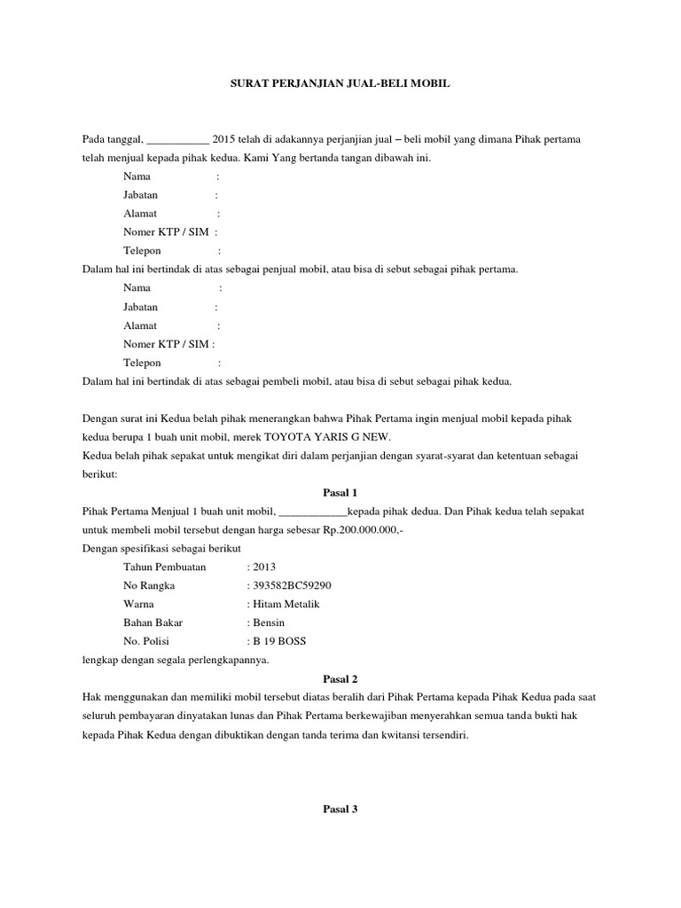 Contoh Surat Perjanjian Jual Beli Mobil Bekas Doylc Asia