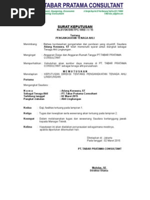 Gunung abadi jakarta telp. Susunan format surat keputusan pengangkatan karyawan tetap sangatlah penting bagian terpenting adalah pencantuman tanggal pengangkatan nama karyawan nama pengangkat.