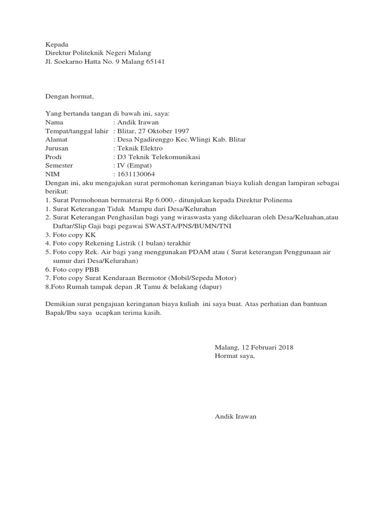 Contoh surat keringanan biaya. Namun masalah ekonomi yang tidak dapat diprediksi terkadang berimbas pada kegiatan sekolah atau perkuliahan. Kepada yth direktur cv. Demikian surat keterangan ini kami buat untuk menjadikan periksa adanya dan atas terkabulnya permohonan ini kami sampaikan terima kasih atas perhatiannya. Maka dengan ini kami mengajukan permohonan untuk anak tersebut agar dapatnya diberi bantuan keringanan biaya sekolah untuk tahun ajaran 2013 sampai seterusnya. Contoh surat untuk ibu yang menyentuh hati. Contoh surat permohonan keringanan biaya kuliah sebagai referensi dalam membuat surat permohonan keringanan biaya yang baik.