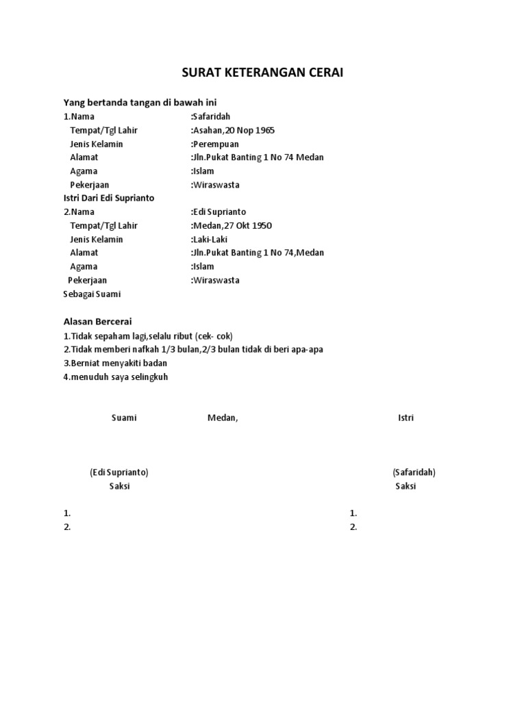 Contoh Surat Pernyataan Cerai Dalam Bahasa Indonesia Terbaru Doc