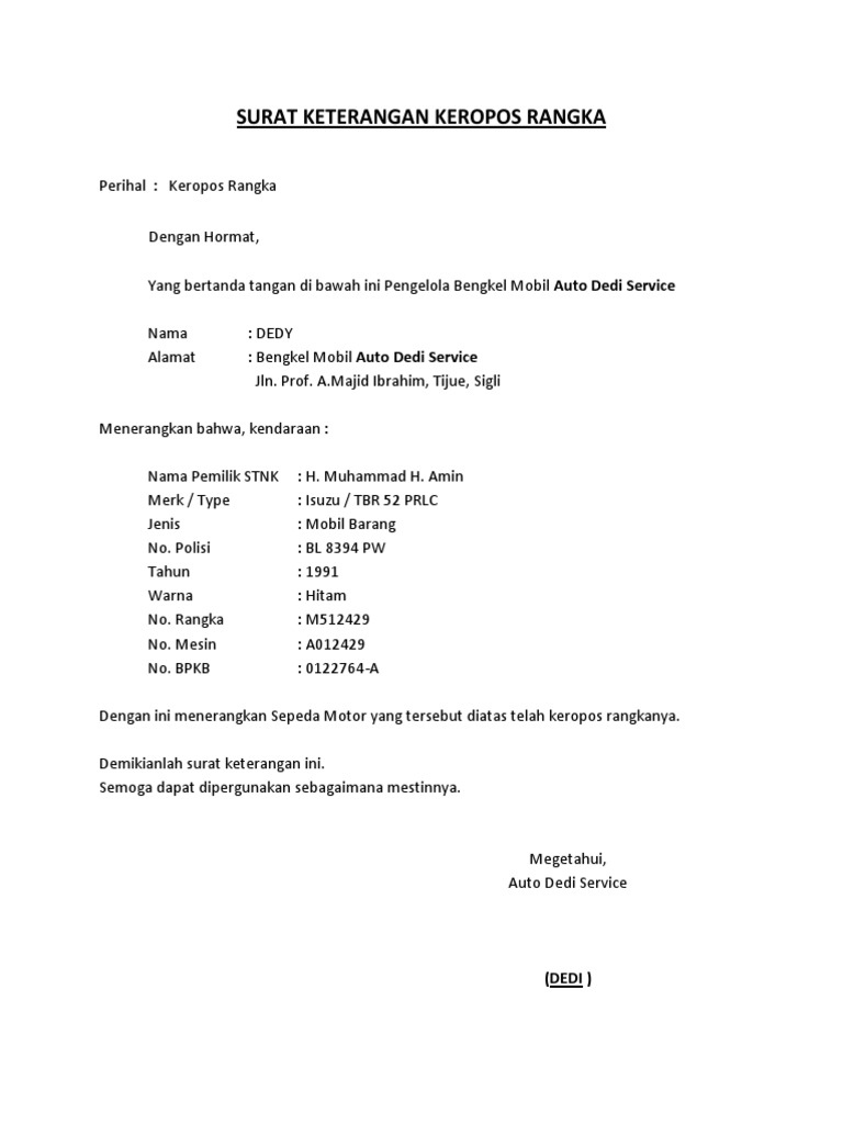 Contoh surat keterangan bengkel rubah bentuk mobil. Setelah sebelumnya posting tentang prosedur cara merubah stnk karena ganti cat warna mobil dimana salah satu syarat utama yang wajib adalah meminta surat keterangan dari bengkel tempat mobil di cat. Contoh surat keterangan ganti rubah warna dan bentuk kendaraan motor info birokrasi syarat perubahan bentuk dan warna kendaraan bengkel las bengkel las. Kami yakin ini sangat berarti. Contoh surat kuasa pembayaran pajak motor dan mobil 13 contoh surat kuasa yang baik dan benar untuk berbagai keperluan. Surat keterangan adalah surat yang isinya menerangkan seseorang atau suatu hal. Surat keterangan rubah bentuk.