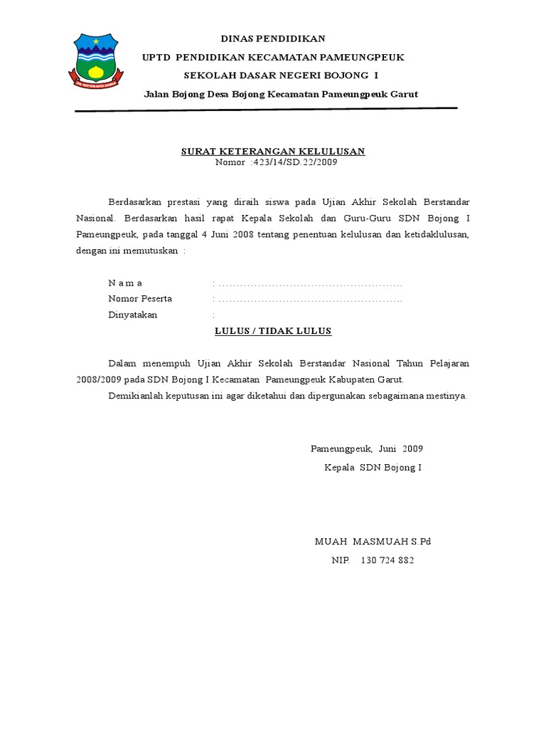 Contoh surat keterangan kelulusan sd. Download contoh surat keterangan lulus tahun 2020 semua jenjang rekan rekan semua kali ini admin akan membagikan informasi mengenai download surat keterangan kelulusan sementara terbaru untuk jenjang sd smp sma dan smk tahun ajaran 20192020 format word. Saat ini peserta didik sudah usai melakukan ujian nasional dan sudah semestinya meneruskan ke jenjang yang lebih tinggi. Surat resmi yang dibubuhi tanda tangan kepala sekolah ini dibutuhkan oleh mereka mereka yang sudah lulus sd smp atau sma dan ingin segera melanjutkan sekolahnya ke jenjang yang lebih tinggi. Contoh surat kelulusan sdmi. Contoh surat keterangan lulus sementara sd smp sma doc surat keterangan lulus sekolah adalah surat yang diterbitkan oleh pihak sekolah sebagai solusi dan pengganti dari ijazah yang belum keluar. Dan untuk lebih memudahkan silahkan diunduh melalui tautan berikut.