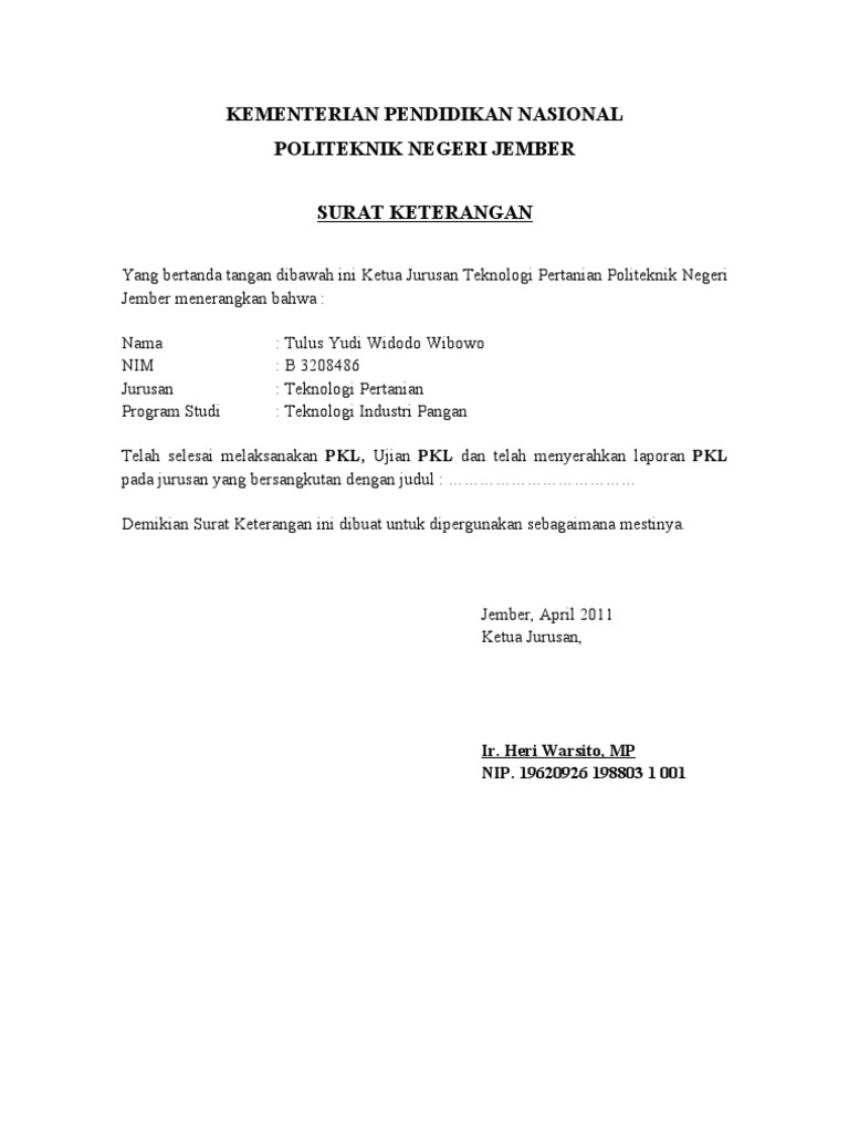 Contoh surat keterangan kerja sebuah surat keterangan kerja sangatlah dibutuhkan untuk memberikan penjelasan kepada seseorang instansi maupun perusahaan tempat bekerja agar dapat menerangkan memberikan penjelasan tentang suatu hal yang terkait misalnya kecakapan prilaku maupun lama pengabdian. Pt tempat magang yang dituju. Surat keterangan magang ini dibuat untuk siswamahasiswa yang telah selesai magang di perusahaan surat keterangan magang ini menjadi syarat yang harus di lampirkan di laporan magang surat ini juga dapat digunakan untuk sedikit tambahan lampiran pada lamaran kerja agar mendapat nilai lebih dari panitia seleksi. Surat keterangan selesai praktek kerja lapangan.