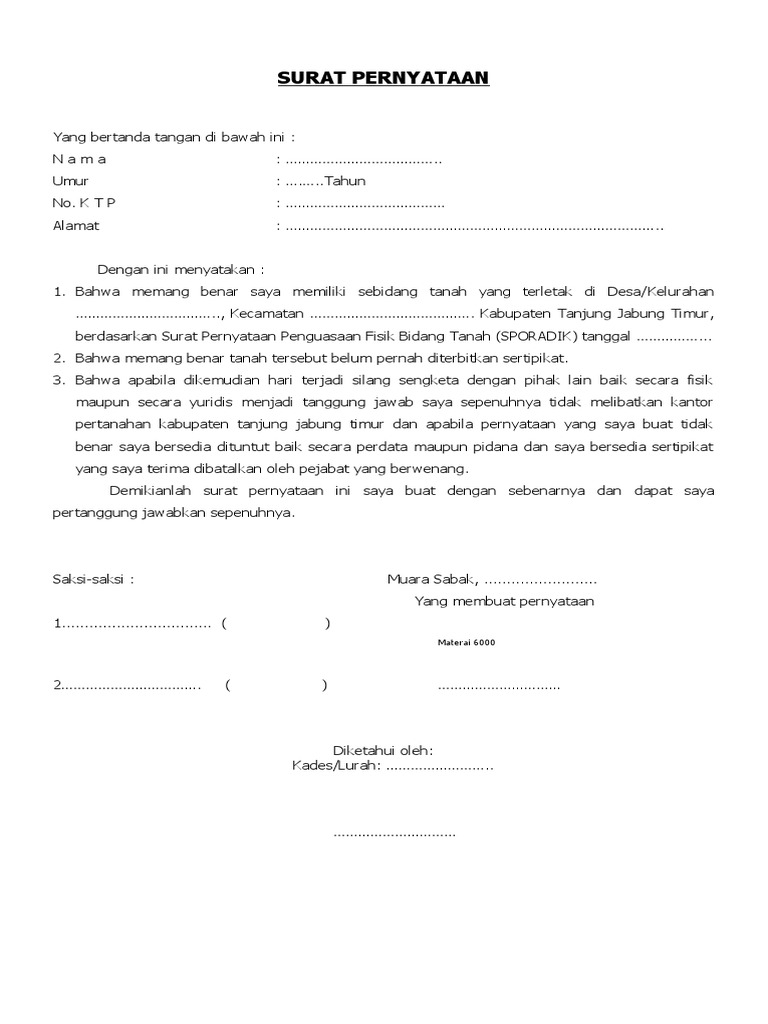 Pastikan surat suratnya lengkap seperti. Contoh format surat keterangan tidak sengketa dari. Download draf surat pernyataan tanah tidak sengketa. Contoh surat pernyataan tanah tidak sengketa. Surat tersebut ditandatangani oleh satu atau beberapa saksi dan diketahui oleh pemerintah lokal selain oleh yang membuat pernyataan itu sendiri. Contoh surat keterangan tanah dari kepala desa august 3 2014 by obbie afri gultom 4 comments silahkan anda download contoh surat keterangan tanah dari kepala desa dibagian bawah postingan ini.