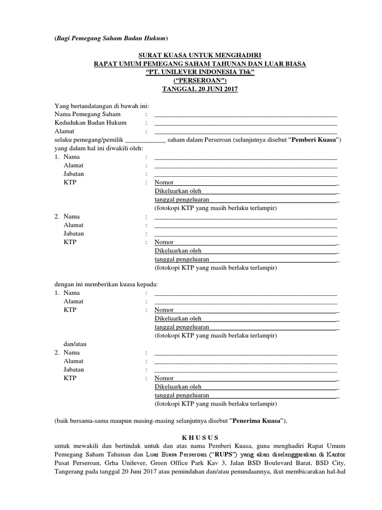 Contoh surat perjanjian no. Apakah bisa salah satu pemegang saham membuat surat kuasa untuk menghadiri rups dengan agenda penjualan saham milik pemberi kuasa itu sendiri. The collection that consisting of chosen picture and the best amongst others. Dengan menerbitkan saham memungkinkan perusahaan perusahaan yang membutuhkan pendanaan jangka panjang untuk menjual kepentingan dalam bisnis. Contoh surat perjanjian jual beli 2. Contoh surat kuasa dalam mewakili di rapat umum pemegang saham rups.