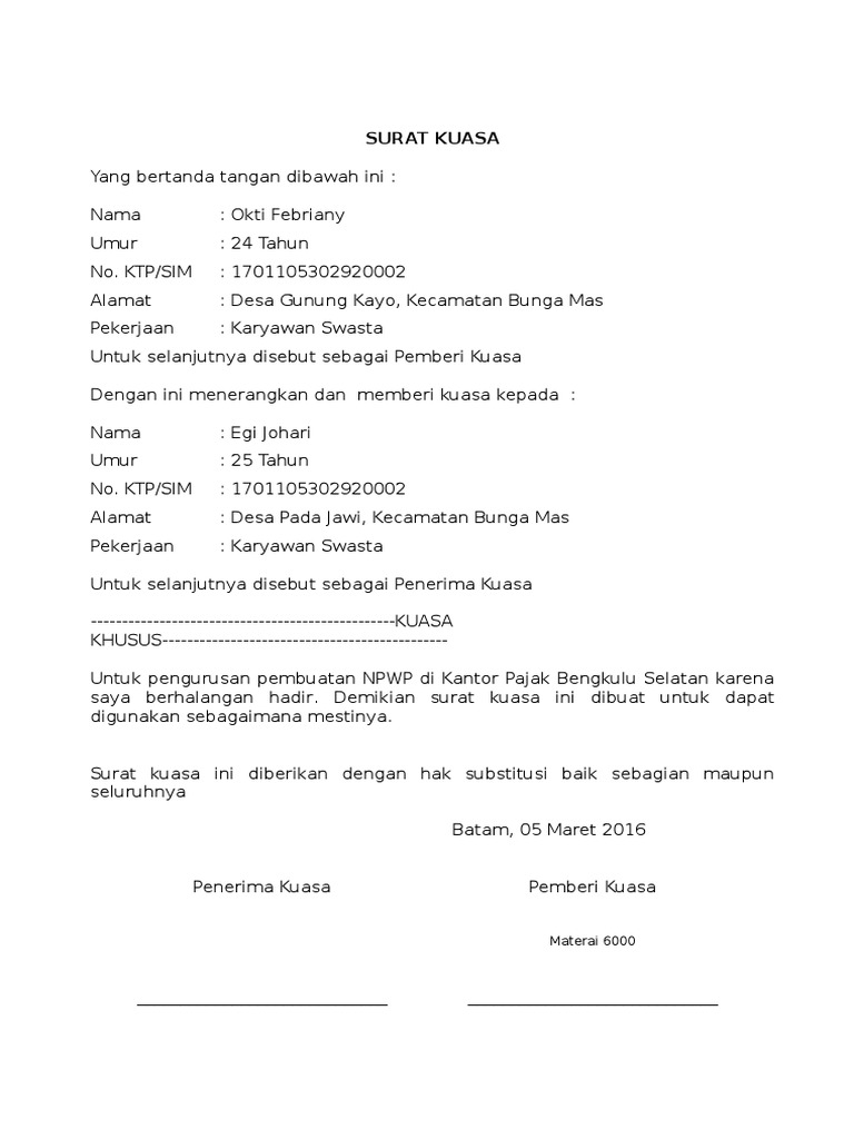 Contoh Surat Kuasa Ini Jenis Dan Struktur Penulisannya
