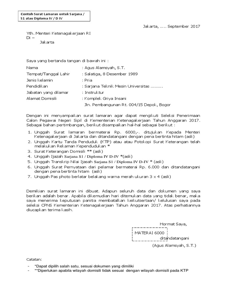 Format Terbaru Contoh Surat Lamaran Cpns Kementerian Hukum
