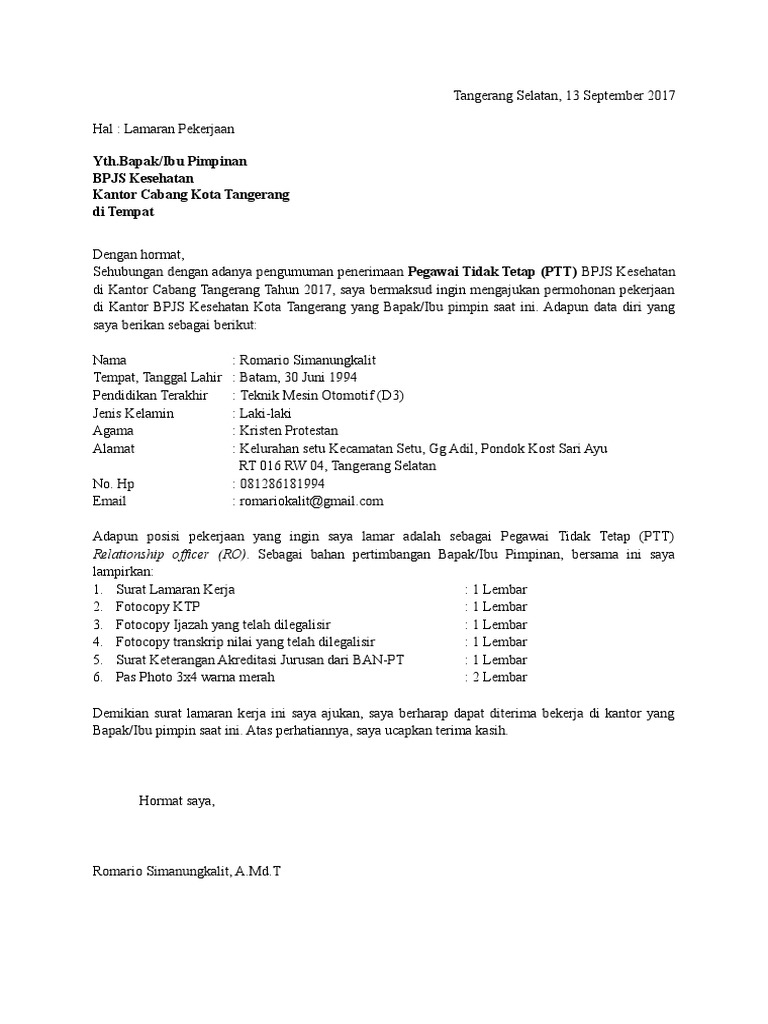Contoh surat lamaran kerja di bri adalah materi yang akan kami bagikan kepada anda khususnya calon pelamar kerja banksebelum menginjak pembahasan lebih lanjut pada artikel ini akan kami ulas beberapa hal yang perlu diketahui berkaitan dengan lamaran kerja di bank. Yang membedakan hanya tujuannya yaitu untuk melamar kerja di bank. Kami disini akan menyediakan contoh surat lamaran kerja bank bri untuk posisi tertentu yang nantinya bisa anda download dan edit data diri dan kemudian digabung dengan dokumenen lainya seperti cv dan foto copy ijazah dan lain sebagainya. Yogo indra pangestu sh. Contoh surat lamaran kerja di bank bni adalah surat lamaran kerja terbaru yang akan admin bagikan pagi ini. Yah bekerja di bank memang tampak terlihat keren penghasilan besar dan juga tempat kerja yang nyaman.