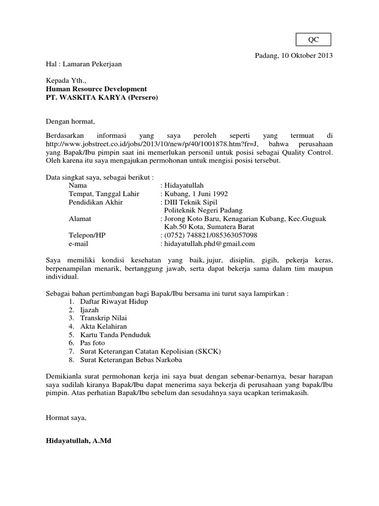 Karena setiap orang pada akhirnya memang akan membutuhkan sebuah pekerjaan untuk memperoleh penghasilan guna mencukupi kebutuhan sehari harinya. Jika ingin melamar pekerjaan dibank kurang lebih contohnya seperti dibawah ini jika ingin mengirim lamaran pekerjaan di suatu bank yang berbeda tinggal kalian ganti namanya banknya. Lowongan kerja di telkomsel memang jarang selalu terdengar dan disebarkan secara umum. Contoh surat lamaran kerja di perusahaan seringkali dicari oleh para pencari kerja yang ingin mengajukan lamaran pekerjaan di perusahaan perusahaan yang ada di indonesia. Dengan hormat sehubungan dengan informasi yang saya peroleh melalui laman instagram lowongan kerja garut pada tanggal 01 april 2019 terkait lowongan sebagai teknisi lapangan melalui surat ini saya bermaksud untuk mengajukan lamaran pekerjaan. Contoh surat lamaran kerja melamar sebuah pekerjaan merupakan suatu hal yang umum terjadi pada kehidupan kita sehari hari.