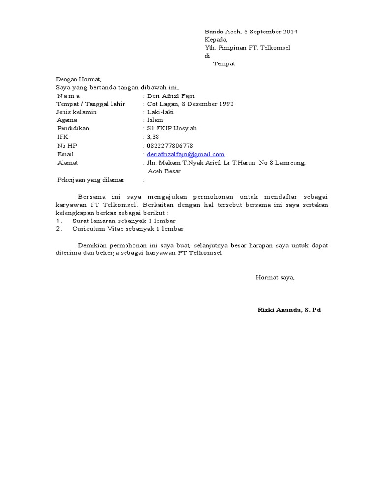 Contoh daftar riwayat hidup tulis tangan 1. Kepala hrd telkom garut jalan cibatu garut jawa barat. Contoh surat lamaran kerja dibawah ini untuk bank mandiri apabila ingin melamar dibank bri bca dan sebagainya silahkan. Contoh surat lamaran kerja telkom sebagai teknisi indihome. Kami disini akan membantu anda bagaimana cara membuat srrat lamaran kerja di pt telkomsel yang baik dan. Contoh surat lamaran kerja sales telkomsel.