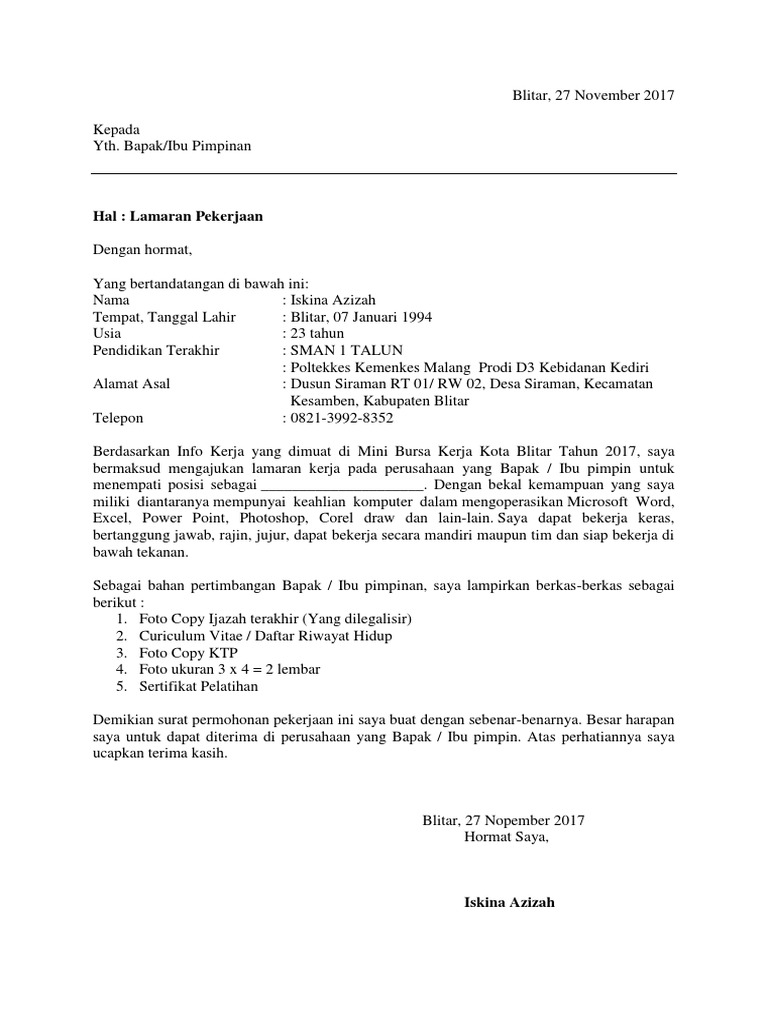 Contoh surat lamaran kerja di transmart. Seperti biasa langsung saja kita lihat implementasi poin poin di atas dalam contoh surat lamaran kerja carrefour berikut ini. Contoh surat lamaran kerja yang baik dan benar sesuai dengan eyd ejaan yang disempurnakan untuk melamar pekerjaan di berbagai instansi baik bumn maupun swasta lengkap dengan file doc siap untuk didownload dan diprint out cetak. Mungkin terdapat jutaan artikel di internet yang menyediakan panduan bagaimana cara membuat surat lamaran pekerjaan yang disertai contoh surat lamaran pekerjaan baik itu surat lamaran kerja untuk melamar ke perusahaan maupun surat lamaran pekerjaan. Contoh surat lamaran kerja di perusahaan seringkali dicari oleh para pencari kerja yang ingin mengajukan lamaran pekerjaan di perusahaan perusahaan yang ada di indonesia. Contoh surat lamaran kerja ini dibuat tentu saja untuk menjadi referensi bagi anda yang sedang mencari panduan untuk membuat surat lamaran kerja. Contoh surat lamaran kerja di cafe contoh surat lamaran kerja di cafe.