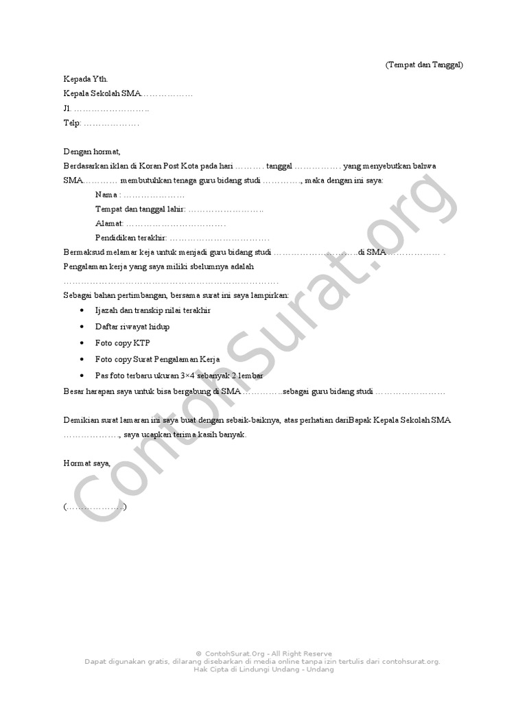 Akan tetapi karena tujuan tempat bekerja anda. Karena dengan ilmu yang diberikan guru dapat membuat anak muridnya menjadi orang yang sukses. Walaupun memiliki pendidikan yang lumayan namun belum bisa menjamin kalau seseorang itu akan mendapatkan pekerjaan dengan mudah. Contoh surat lamaran kerja guru sma dengan hormat sehubungan dengan informasi yang saya dapatkan mengenai penerimaan tenaga pengajar baru di smpn 22 kota serang maka dari itu saya. Yth bapak ibu kepala sekolah. Bogor 10 juli 2019.