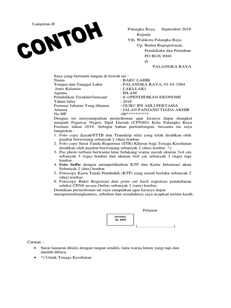 Contoh Surat Lamaran Cpns 2019