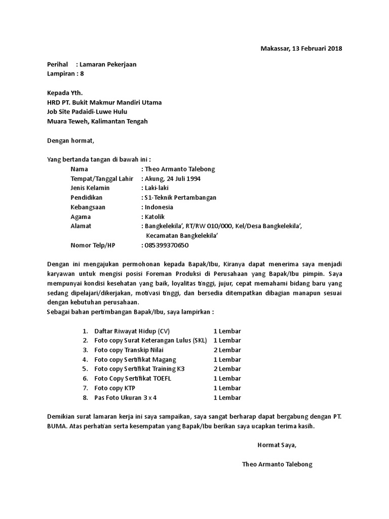 Contoh surat lamaran kerja pt bukit asam tbk. Admin blog kumpulan surat penting juga mengumpulkan gambar gambar lainnya terkait contoh surat lamaran kerja pt bukit asam tbk dibawah ini. Saat ini pt bukit asam persero tbk kembali membuka lowongan kerja terbaru pada bulan maret 2020. Usia maksimal 24 tahun tanpa pengalaman dan maksimal 26 tahun bagi yang memiliki pengalaman kerja yang relevan minimal 2 tahun. Adapun dibawah ini adalah posisi jabatan yang saat ini tersedia bagi anda para pencari kerja yang tertarik untuk mengembangkan karir anda bersama pt bukit asam persero tbk dengan kualifikasi sebagai berikut. Lowongan kerja pt bukit asam 2020 loker bumn pt bukit asam tbk rekrutmen karyawan pt bukit asam lowongan kerja pt bukit asam untuk tamatan sma ma smk d3 s1 lowongan kerja bumn pt bukit asam terbaru bulan ini lowongan pekerjaan pt bukit asam sumsel pendaftaran loker pt bukit asam lowongan karir di pt bukit asam. Berikut ini adalah lowongan kerja pt bukit asam tbk.