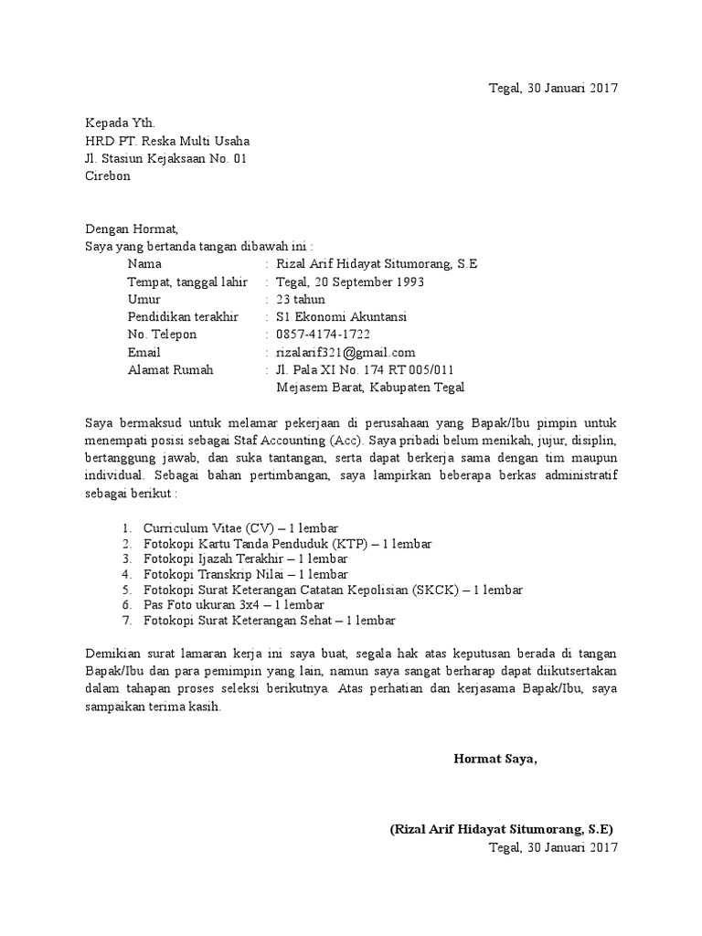 Contoh surat lamaran kerja pt reska multi usaha. Contoh surat lamaran pt reska have an image from the othercontoh surat lamaran pt reska in addition it will feature a picture of a kind that could be seen in the gallery of contoh surat lamaran pt reska. Dengan mengetahui kriteria dan kebutuhan rekrutmen yang telah dijelaskan diatas dengan demikian para pencari kerja yang merasa memenuhi persyaratan meliputi pendidikan umur dll dan memang merasa berminat dengan lowongan kerja terbaru pt reska multi usaha pada bulan februari 2020 diatas hendaknya secepatnya untuk melengkapi dan menyusun berkas lamaran kerja seperti surat lamaran kerja cv. Disini saya akan memberikan contoh surat lamaran kerja di pt yang baik dan benar 2019 dalam pembuatn contoh surat lamaran kerja di pt tuliskan dengan posisi yang sesuai apa yang pt butuhkan. 5 lbr kepada yth. Apalagi jika mendapatkan pekerjaan di perusahaan bergensi dengan skala nasional atau international. The collection that consisting of chosen picture and the best among others.