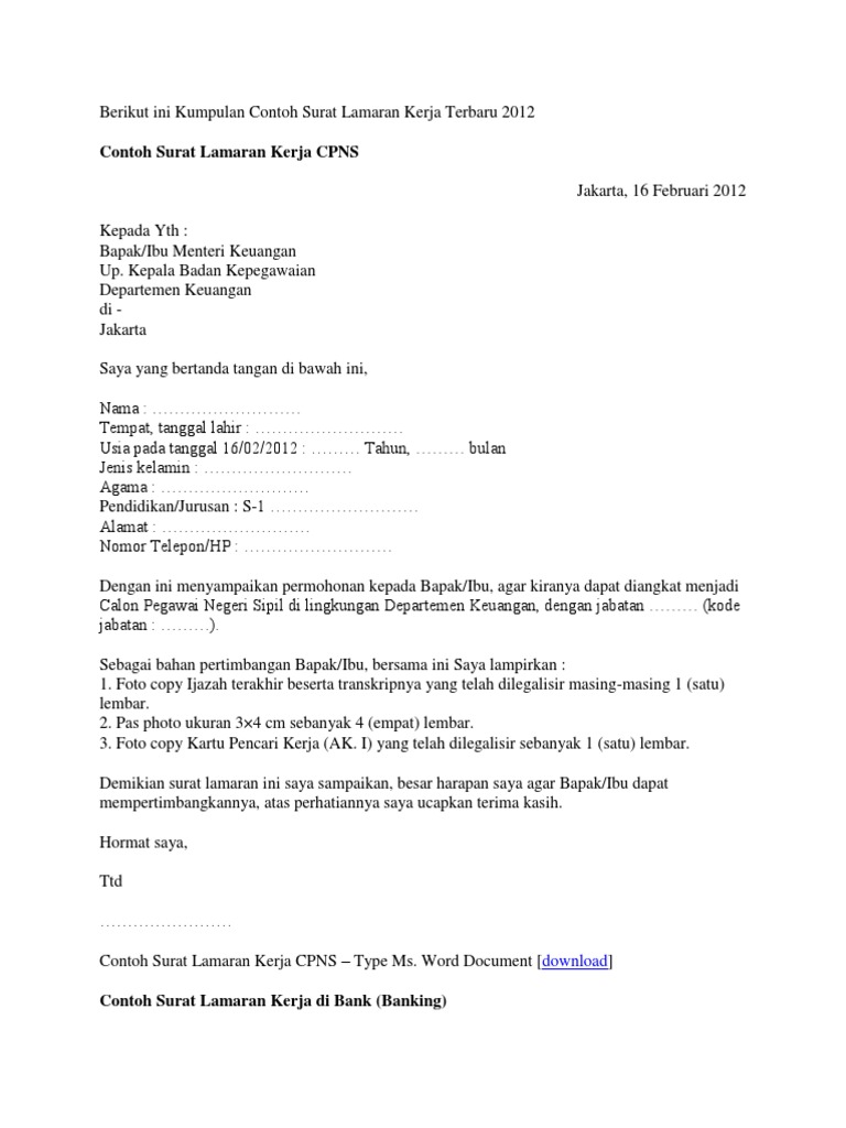 Dengan hormat sehubungan dengan informasi yang saya dapat melalui surat kabar kompas saya bermaksud mengajukan lamaran pekerjaan di perusahaan yang bapakibu pimpin. Contoh surat lamaran kerja doc word sudah banyak yang share di internet namun masih sangat sedikit yang menggunakan format yang baik dan benar.