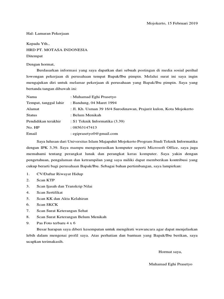 Tetapi banyak sekali diantara kita yang tidak tahu bagaimana cara membuat surat lamaran kerja yang baik agar kemungkinan. Admin blog dapatkan contoh 2019 juga mengumpulkan gambar gambar lainnya terkait contoh surat lamaran menjadi prajurit tulis tangan dibawah ini. Surat keterangan peserta un ujian nasional. Bagi yang pindah domisili membawa surat keterangan pindah domisili dari kelurahankecamatan. Surat lamaran ditulis tangan dengan menggunakan tinta hitam 7. Contoh surat lamaran kerja 2019 terbaru bagi seseorang yang ingin bekerja pada suatu perusahaan pasti akan mendaftarkan diri dengan membuat persyaratan tertentu agar kemungkinan besar diterima pada perusahaan tersebut yang salah satunya adalah surat lamaran kerja.