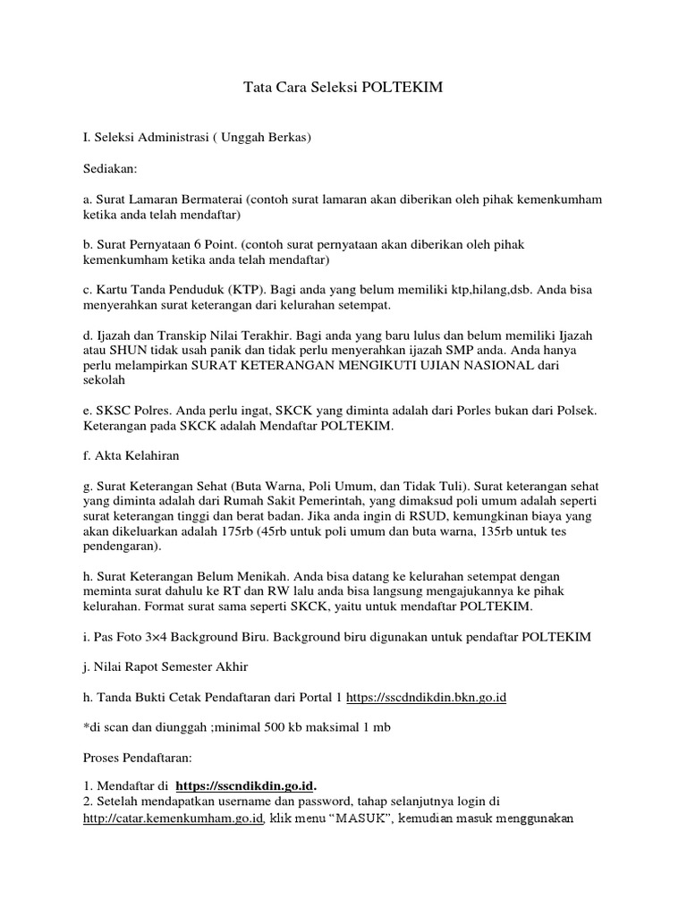 Contoh surat lamaran poltekip poltekim cpns kemenkumham persyaratan mendaftar poltekip poltekim pendaftaran sekolah kedinasan 2020 auto pns sekolah ikatan dinas ipdn poltekip poltekim stin. Lewat akun twitter at catarkumham surat lamaran catar kemenkumham 2020 harus sesuai dengan formar yang telah diunggah kemenkumham. Format surat lamaran sekolah kedinasan sekolah kedinasan politeknik ilmu pemasyarakatan poltekip dan politeknik imigrasi poltekim kementerian hukum dan hak asasi manusia ri. Semangat persiapan tes masuk poltekim 2020 dan tes masuk poltekip 2020 dari sekarang. Contoh format surat pernyataan 6 poin seleksi calon tarunai sekolah kedinasan di kementerian hukum dan hak asasi manusia republik indonesia. Atas perhatian dari bapak ibu saya mengucapkan terima kasih.
