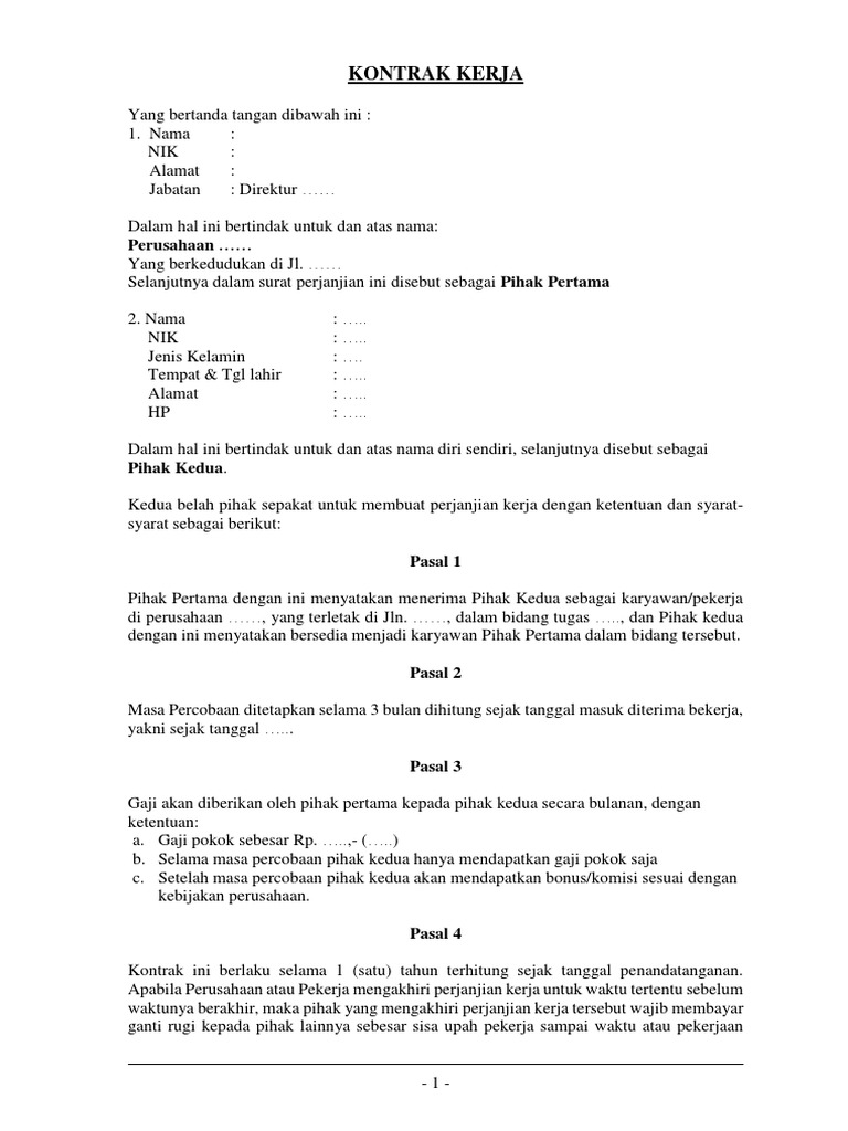 Lama masa percobaan karyawan. 13 tahun 2003dalam undang undang ini menyebutkan bahwa jangka waktu maksimal untuk masa percobaan. Pihak pihak yang terkait yang tertulis dalam surat biasanya pihak 1 perusahaan dan pihak 2 karyawan. Contoh surat perjanjian kerja pada aktifitas kerja terdapat surat perjanjian yang digunakan untuk membuat kesepakatan antar pihak pihak yang terlibat dalam kerjasama. Surat perjanjian kerja kontrak masa percobaan. Setiap pekerja tentu ingin menjadi karyawan tetap.