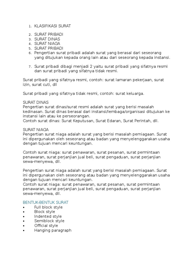 Let Us Study Bentuk Surat Lekuk Indented Style Surat