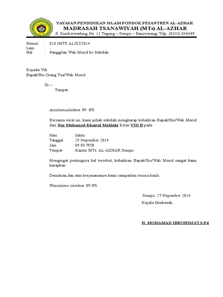 Contoh Surat Panggilan Orang Tua Ke Sekolah Kumpulan Surat