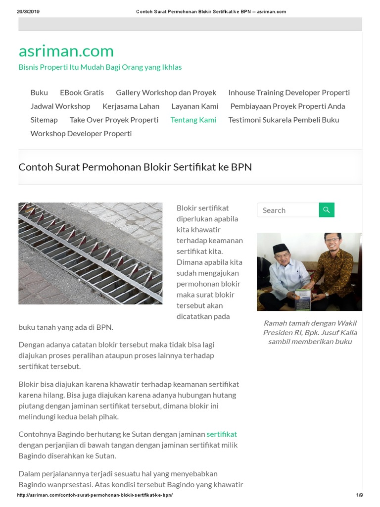 Contoh Kuasa Pemblokiran Tanah Di Badan Pertanahan