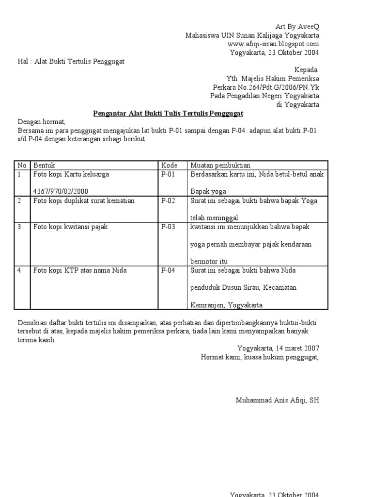 Demikianlah alat bukti surat ini tergugat ajukan atas perhatiannya tergugat ucapkan terimaksih. Contoh surat gugatan perdata perceraian di pengadilan negeri bagi awam surat gugatan adalah suatu surat yang diajukan oleh penggugat atau kuasa penggugat kepada ketua pengadilan yang dalam wilayah hukum pengadilan yang berwenang yang berisi dan memuat tuntutan tuntutan akan hak yang di dalamnya mengandung suatu sengketa dan juga merupakan dasar landasan pemeriksaan suatu perkara dan. Contoh surat kesimpulan dari tergugat. Copy surat akta pelunasan hutang no. Nama surat seperti pada surat pernyataan lain pada umumnya hal pertama yang harus dicantumkan adalah nama surat itu sendiri. Untuk dan atas nama serta sah mewakili kepentingan pemberi kuasa bertindak sebagai kuasa hukum dalam kedudukannya sebagai penggugatuntuk membuat dan menandatangani serta mengajukan surat gugatan cerai terhadap suami tergugat yang bernama.