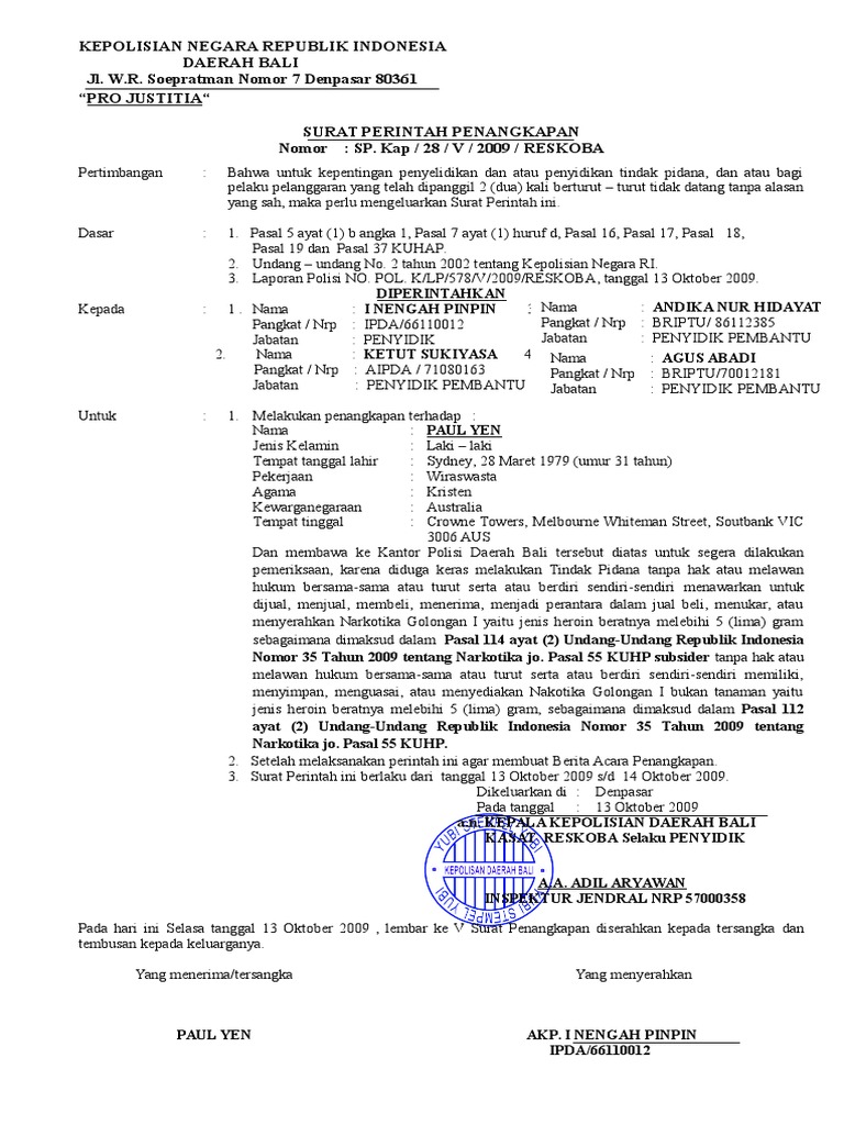 Klp578v2009reskoba tanggal 13 oktober 2009. Contoh surat penangkapan kepolisian negara republik indonesia daerah bali jl. Contoh surat kuasa melapor polisi contoh surat pengaduan ke polisi masalah penggeregahan tanah. Contoh surat laporan pengaduan ke polisisebagai aparat memberikan pelayanan serta pelindungan hukum kepada masyarakat maka jika anda merasa telah dirugikan oleh seseorang atau telah menjadi korban tindak kriminal anda bisa melaporkan perkara tersebut kepada pihak kepolisian. Contoh surat penangkapan kepolisian negara republik indonesia daerah bali jl. Pada hari ini senin tanggal 24 februari 2014 sekitar pukul 11.