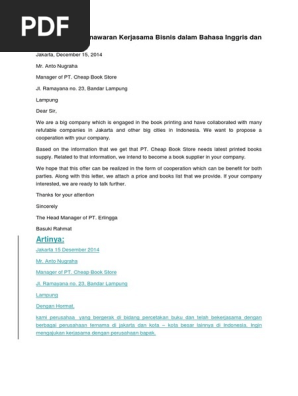 Contoh surat penawaran barang elektronik dalam bahasa inggris. Apabila sahabat bdbi merasa bahwa artikel mengenai surat penawaran ini bermanfaat untuk orang lain maka dapat sahabat share melalui facebook twitter dan lainnya. Admin kali ini akan membagikan secara khusus untuk kalian mulai dari surat penawaran barang jasa hingga kerja sama. Namun dalam berbagai penggunaan contoh surat permintaan penawaran anda juga bisa meminta informasi mengenai harga tata cara pembayaran maupun kemungkinan adanya diskon dari perusahaan penjual. 2 contoh surat penawaran dalam bahasa inggris surat penawaran dalam bahasa inggris adalah surat yang berisi suatu penawaran barang atau jasa dari suatu perusahaan yang disampaikan melalui surat atau email. Surat penawaran barang atau yang dalam bahasa inggris dikenal sebagai sales letter dikatakan sebagai bentuk komunikasi bisnis yang lebih efektif dalam menggaet klien dibandingkan jika mempromosikan melalui brosur atau kartu pos. Penggunaan surat permintaan penawaran ini bukan hanya untuk mengetahui dengan detail barang yang akan anda beli.