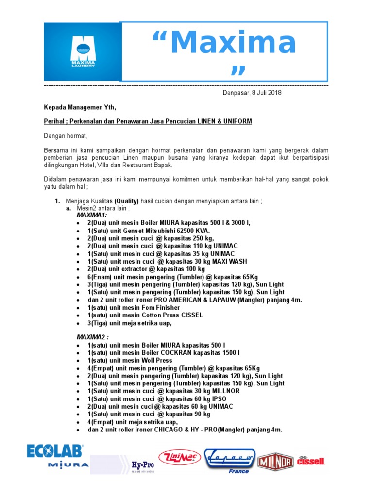 Karena surat penawaran merupakan bagian dari komunikasi tertulis maka pemilihan dan penggunaan bahasa harus diperhatikan. Contoh surat penawaran surat penawaran biasanya sangat diperlukan dalam aktivitas bisnis. Dalam sebuah surat penawaran terdiri dari tiga bagian yakni alenia pembuka isi surat dan penutup. Dua contoh di atas merupakan format yang digunakan untuk menawarkan ke perusahaan lain untuk menjadi distributor produk anda. Nah berikut ini preview contoh surat penawaran harga ini di ms. Word document yang bisa anda download melalui tombol download di bagian bawah postingan ini.