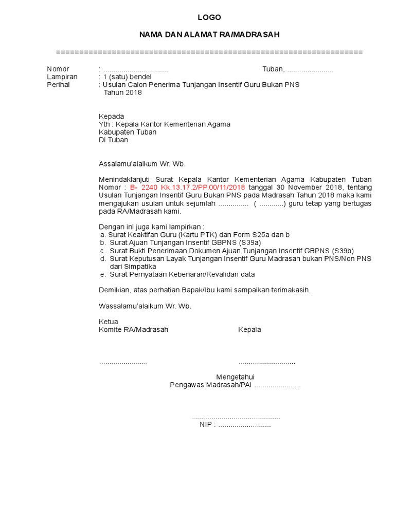 Contoh surat pengajuan insentif. Diisi nomor surat permohonan. Berikut contoh hasil cetak surat ajuan tersebut. Klik tombol cetak surat ajuan pada kotak dialog konfirmasi yang muncul. Ajuan tunjangan insentif gbpns anda telah tersimpan silakan cetak surat ajuan tersebut dan serahkan surat ajuan beserta lampiran dokumen pendukung kepada kantor kemenag kotakab setempat untuk diverifikasi. Proposal pengajuan insentif guru tpq bisa di download pada bagian bawah tulisan ini surat keputusan pengangkatan guru pendidikan al qurán. Anda bisa mengisi surat pengajuan dengan permintaan pindah tugas permohonan izin sampai dengan permintaan bantuan dari pihak lain untuk seseuatu hal misalnya.