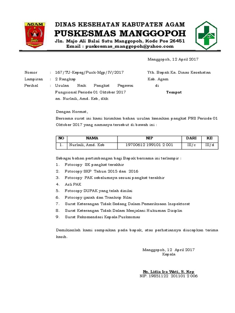 Yang bertanda tangan dibawah ini manager divisi digital marketing pt. Sekurang kurangnya telah 4 empat tahun dalam pangkat terakhir yang dibuktikan dengan melampirkan foto kopi sk pangkat terakhir disahkan oleh pejabat yang. 7 surat permohonan sk konversi nip perbaikan data bkppd. Hal hal yang perlu diingat dalam surat kenaikan pangkat ini adalah pastikan selalu ada dan ditulis dengan benar nama pekerja yang naik pangkat dan keterangan dalam surat mengenai pangkat apa yang diberikan dan juga tanggal kenaikan pangkat. Kepala dinas kesehatan kabupaten tapin di rantau. Telah melakukan proses kegiatan belajar mengajar kbm dengan baik dan disiplin serta berdedikasi tinggi sehingga layak mengajukan usulan penyesuaian kenaikan pangkat ke iii a.