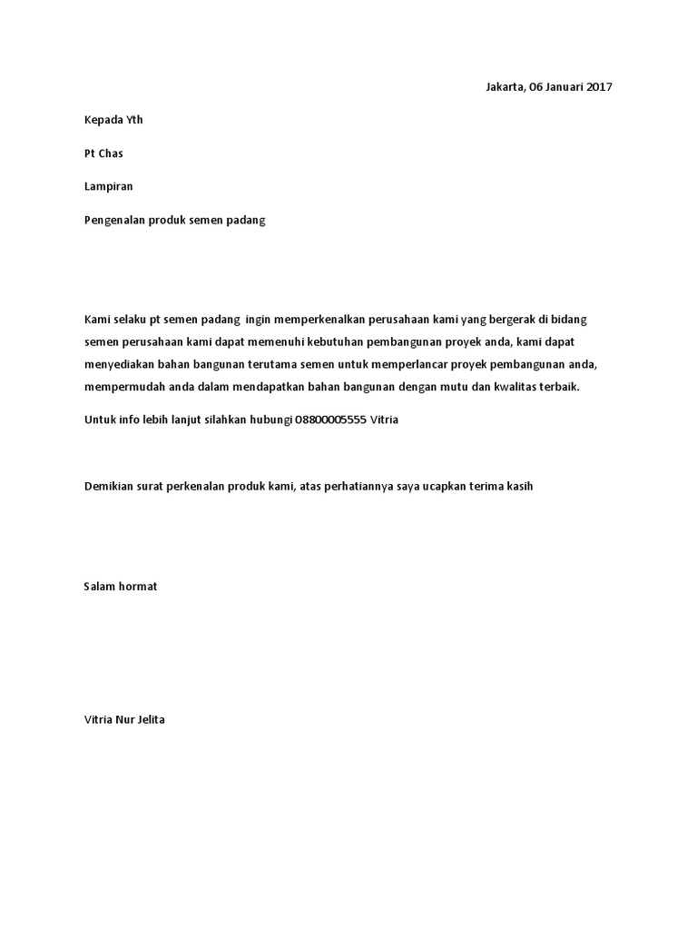 Contoh surat perkenalan produk dalam menjalankan bisnis atau perniagaan tentu ada banyak jenis jenis surat yang dipergunakan. Contoh surat perkenalan perkenalan adalah awal dari segala sesuatu hubungan. Salah satu contoh surat yang sering dipergunakan adalah surat perkenalan produk atau barang. Surat perkenalan adalah surat yang ditulis dengan tujuan memperkenalkan suatu perusahaan kepada perusahaan lembaga atau instansi lain tentang bidang yang geluti barang dan jasa apa saja yang di hasilkan dan lain lain yang menyankut perusahaan tersebut. Contoh surat perkenalan produk surat perkenalan produk adalah surat yang ditulis dengan tujuan memperkenalkan suatu produk barangjasayang di tawarkan kepada suatu perusahaan lembaga dan atau instansi lain tentang jenis dan spesifikasi produk barangjasa yang di produksi perusahaan tersebut. Jenis surat ini tergolong masih merupakan salah satu jenis surat yang masih relevan untuk digunakan pada saat sekarang ini.