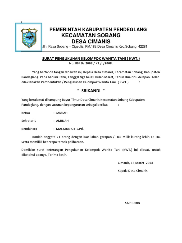 Bahwa kelembagaan petani dimaksud adalah kelompok tani mekar saluyu yang dibentuk pada tanggal 30 juli 2018. Sk pengurus gapoktan tani mulya periode 2015 2018 gapoktan. Surat keputusan kepala desa cimanggucontoh nomor. 520kpts 16 2014 tentang pembentukan dan pengukuhan pengurus kelompok tani. Cara membuat berita acara ini sebenarnya tidaklah sulit. Bahwa untuk kelancaran kelompok wanita tani sejahtera.