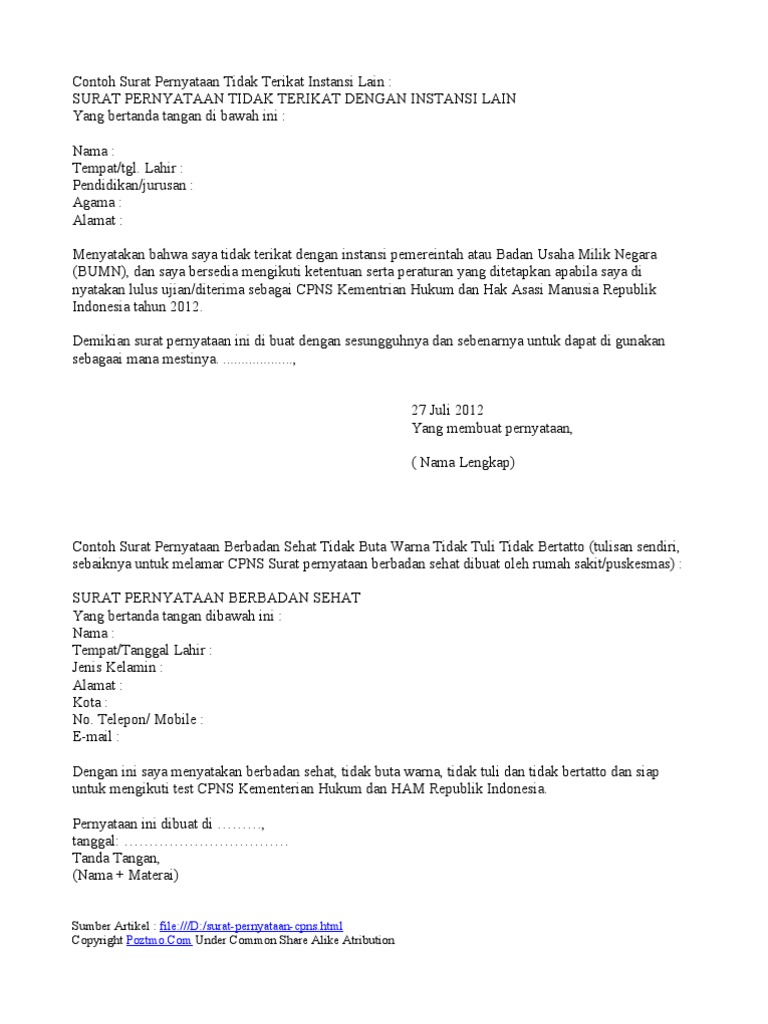 Format Surat Lamaran Dan Surat Pernyataan Cpns Dki Jakarta