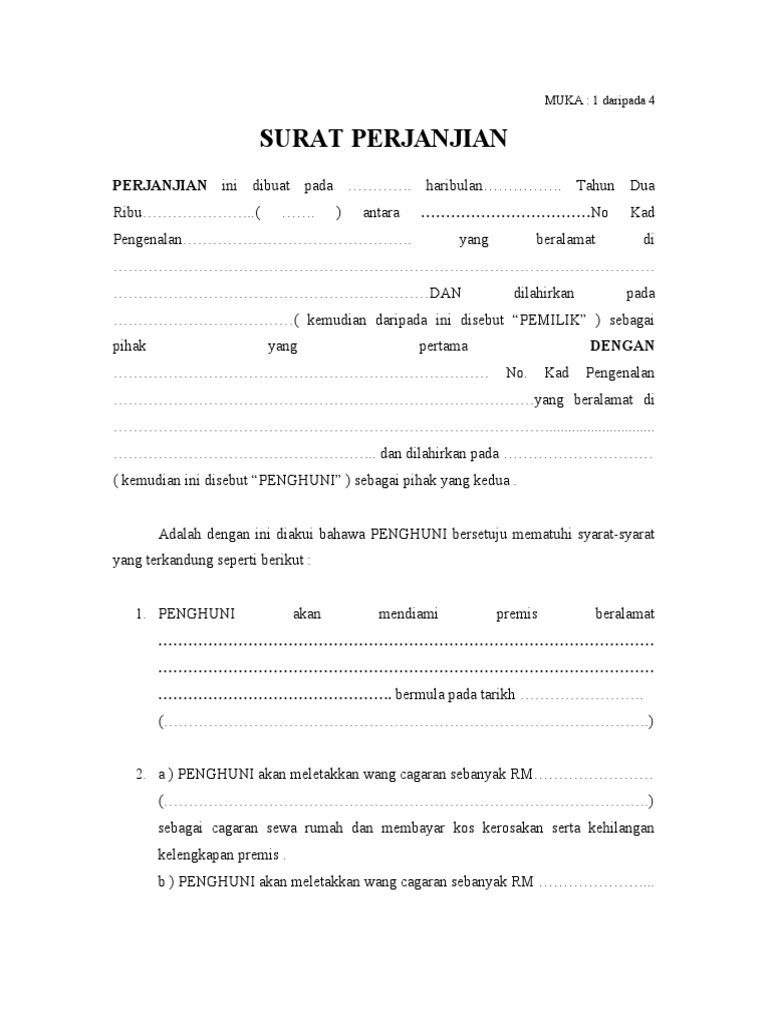 Biasanya orang melakukan transaksi kontrak rumah ini lewat sebuah surat perjanjian bermaterai. Kepada yang menjadi pemilik rumah ataupun penyewa lebih selamat kalau korang buat surat perjanjian sewa rumah tau. Yang bertanda tangan di bawah ini sebagai pihak pertama atau pemilik rumah. Identitas pihak pertama dan pihak kedua identitas lengkap termasuk nama lengkap umur pekerjaan hingga nomor ktp oleh kedua belah pihak. Surat perjanjian ini bukanlah contoh yang sempurna. Surat yang berisi kesepakatan inilah yang kemudian diberi nama surat perjanjian.