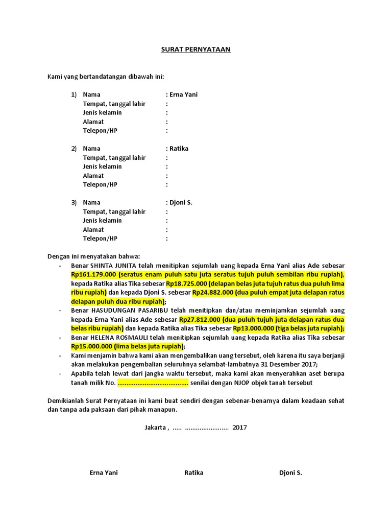 Surat pernyataan telah melunasi pinjaman kredit bank adakalanya proses pembayaran pinjaman kredit bank tidak berjalan mulus seperti yang diharapkan dengan membayar secara rutin dan tepat waktu tanpa satu kalipun ada tunggakan ternyata juga tidak menutup kemungkinan adanya masalah yang tidak diduga dan diingkan. Dengan adanya surat pernyataan tersebu maka kedua belah pihak mempunyai kekuatan hukum yang mengikat sehingga jika terjadi sesuatu hal dengan uang tersebut pihak yang merasa dirugikan dapat menuntut sesuai dengan perjanjian. Membuat surat perjanjian pinjaman uang dapat dilakukan dengan mudah dan tanpa biaya. Jika harus dilakukan maka sebaiknya dibuat surat pernyataan yang menyatakan bahwa pihak yang menerima titipan uang memang benar benar bersedia menjaga uang tersebut. Contoh surat perjanjian tersebut adalah surat perjanjian pembayaran uang muka atau dp rumah yang sah diatas materai. Doc surat perjanjian penitipan uang bryananta bayu.
